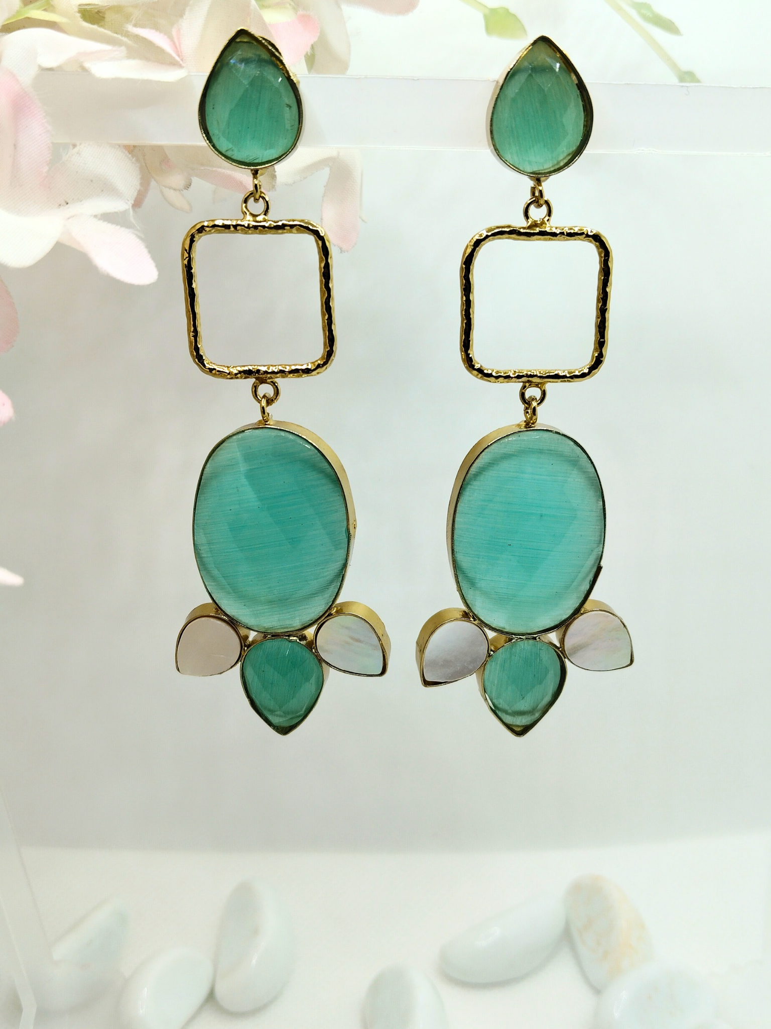 ✨ Bollywood-Style Long Earrings with Green & White Stones ✨